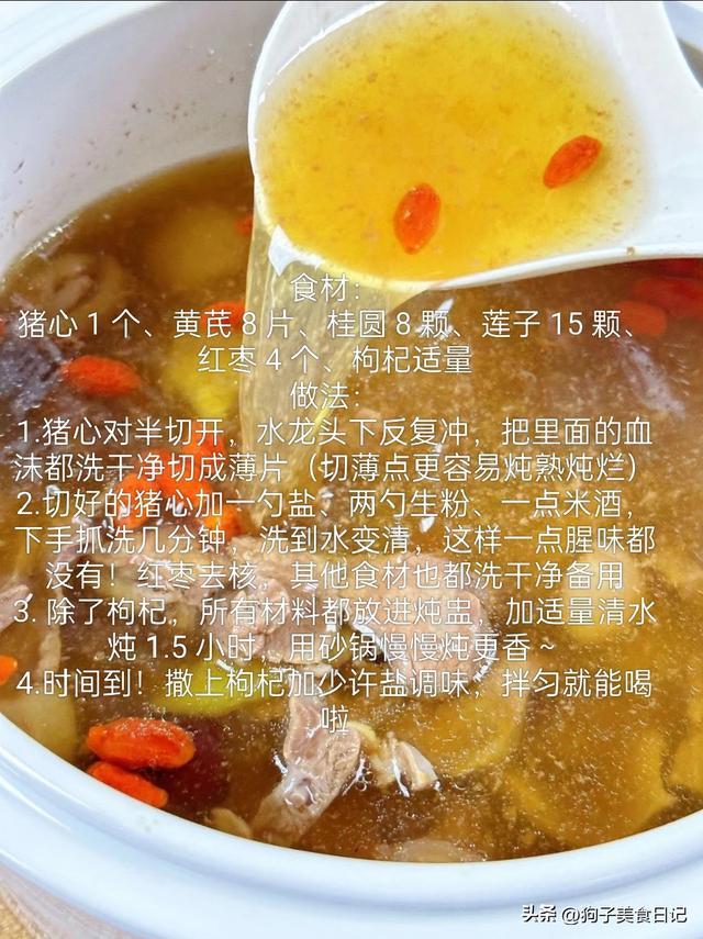 2.猪心炖黄芪桂圆